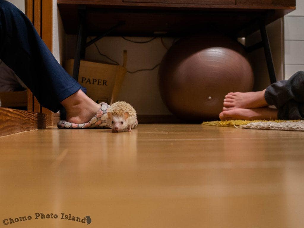 この後ろ足がたまらない。わりと長いんですよ〜ハリネズミの足って(*´ω`*)