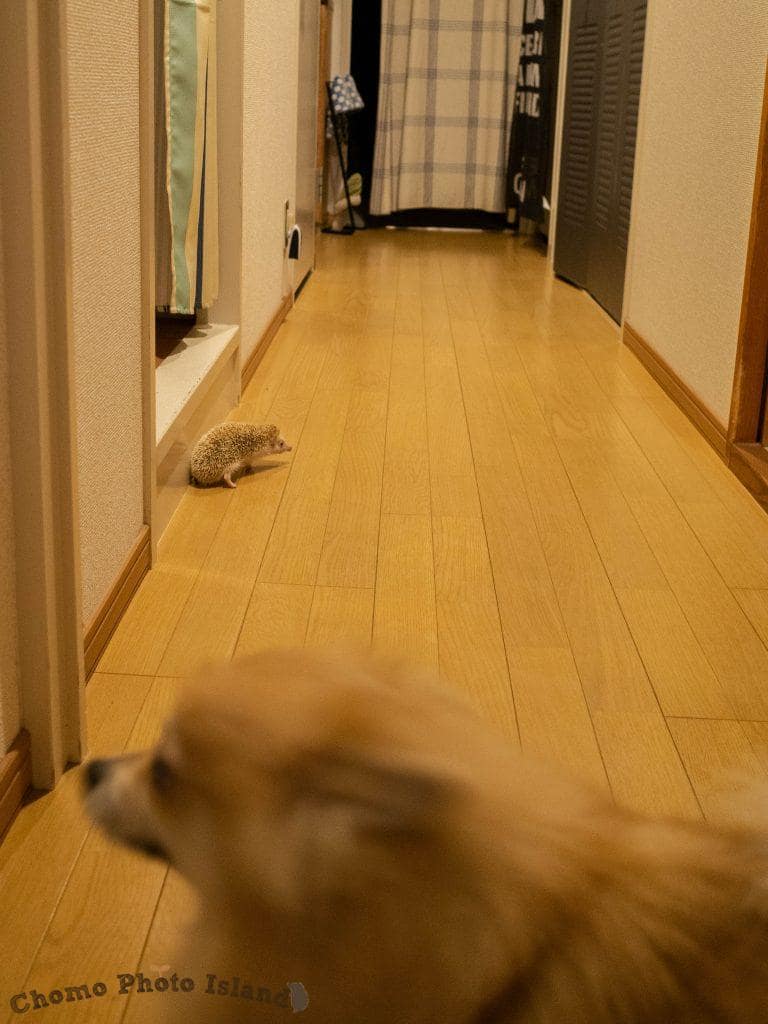 ゆきさんの今日のお散歩コースは廊下のようです。ワンコさん、まだ気がついてません( ̄▽ ̄)